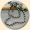 Ein dunkles Akoya-Perlencollier (6,5-7,0 mm), an dem Sie sich