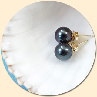 Ein Feuer Tag für Tag – aber nicht alltäglich. Schwarze Akoya- Salzwasserzuchtperlen mit einer Größe von ca. 7,5 mm und glänzendem Lüster. Stecker aus 750er Gelbgold.