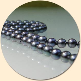 Dunkle Eleganz mit einem Farbspiel von dunkelgrau über pink bis pfauenfedergrün charakterisiert dieses einmalige Akoya-Perlencollier (6,0-6,5 mm). Das Collier ist ca. 55 cm lang und wird von einem Verschluss in 585er Weißgold gehalten.
